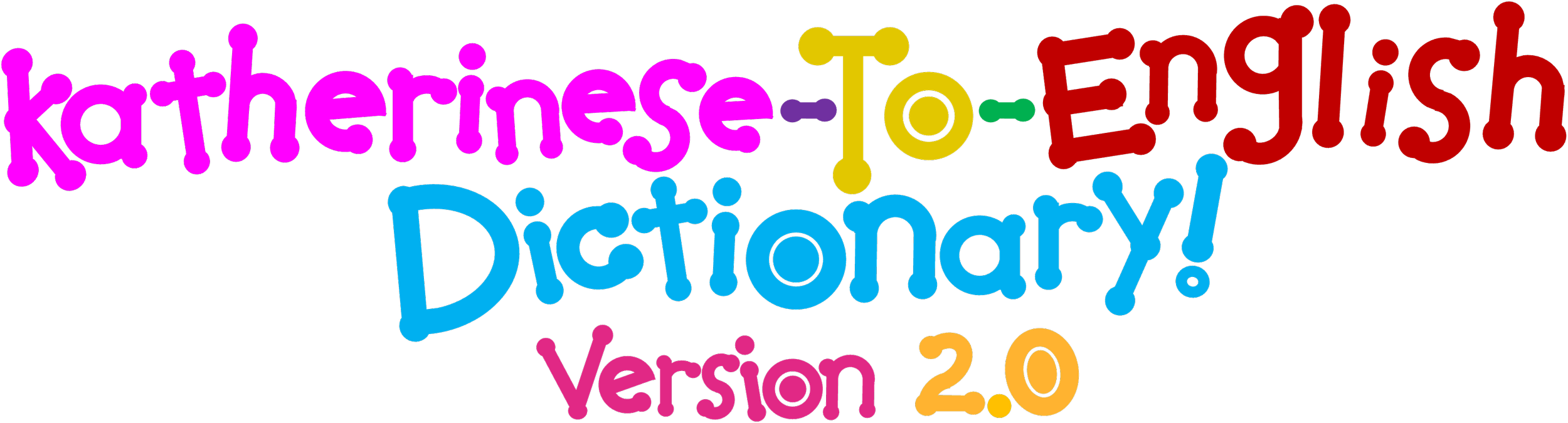 Each section of this page is for each letter of the alphabet, as well as 5 graphemes, which are the letters with two dots over them. The two dots together are called a diacritic. These are often used in German, but this isn’t German. It’s Katherinese! The dictionary entries will include the Katherinese word or phrase, the pronunciation, the translation in English, and which Bop It the word or phrase originates from. The terms will be in alphabetical order.